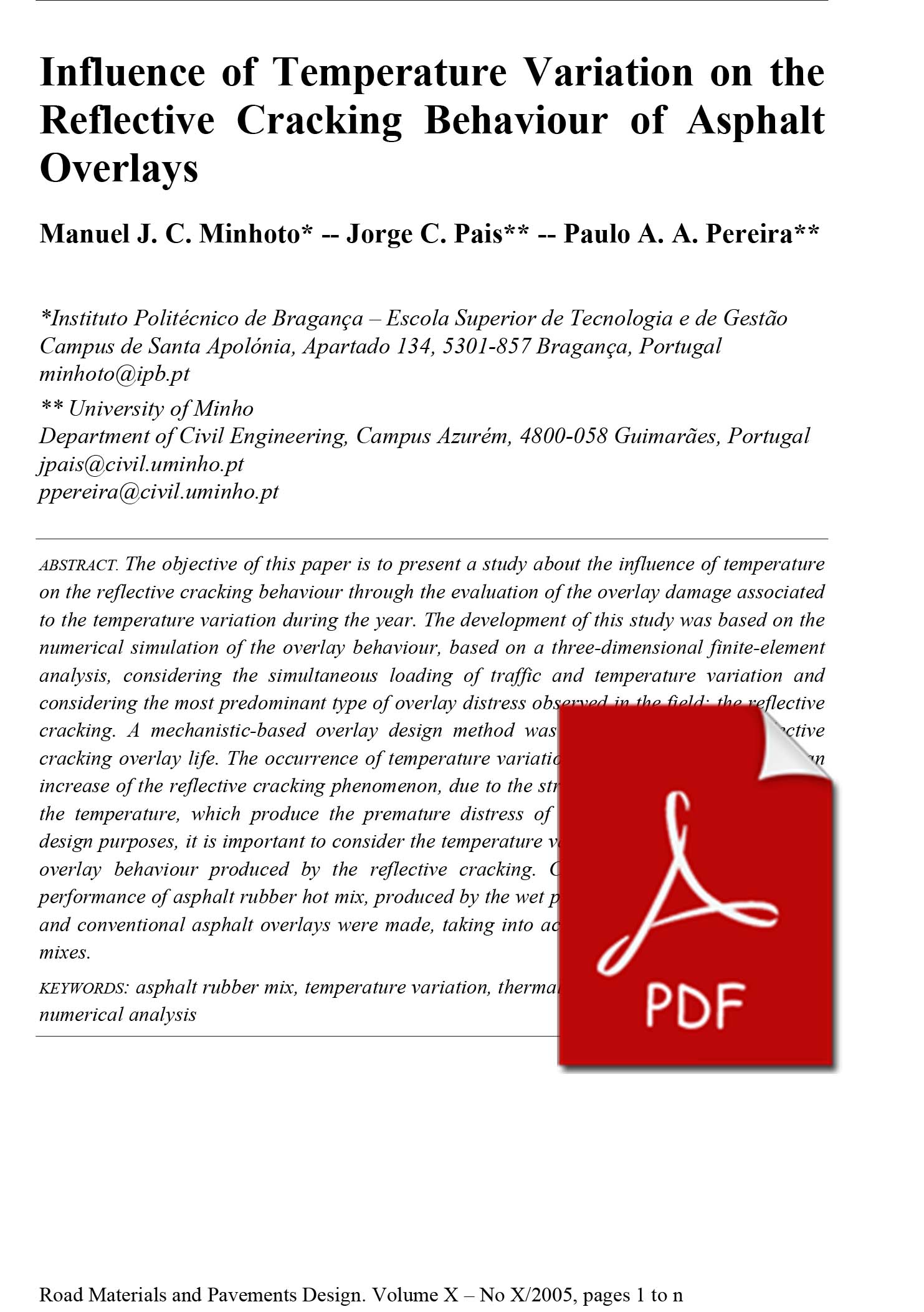design purposes, it is important to consider the temperature variation in the evaluation of the overlay behaviour produced by the reflective cracking. Comparisons between expected performance of asphalt rubber hot mix, produced by the wet process with 20% crumb rubber, and conventional asphalt overlays were made, taking into account the performance of these mixes.