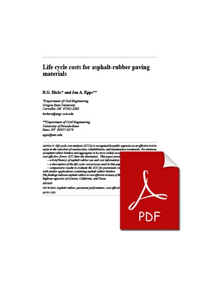 – comparative results to evaluate the LCC for pavements containing conventional binders with similar applications containing asphalt rubber binders.