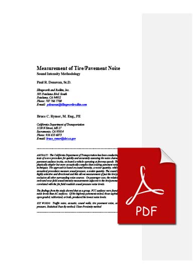 The California Department of Transportation has been conducting preliminary field tests of a new procedure for quickly and accurately assessing the noise characteristics of various pavement surfaces in-situ, on board a vehicle operating at freeway speeds. This new process is physically simpler but more acoustically complex than existing pavement noise evaluation techniques. The approach is based on sound intensity, a vector quantity, while the established acoustical procedures measure sound pressure, a scalar quantity. The sound intensity approach is