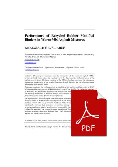 The past few years have seen the introduction of the warm mix asphalt (WMA) technology in efforts to reduce the required energy for the production and construction of the asphalt concrete layer. The basic principle of the WMA technology is to lower the mixing and compaction temperatures of the produced mixture through lowering the viscosity-temperature relationship of the asphalt binder.