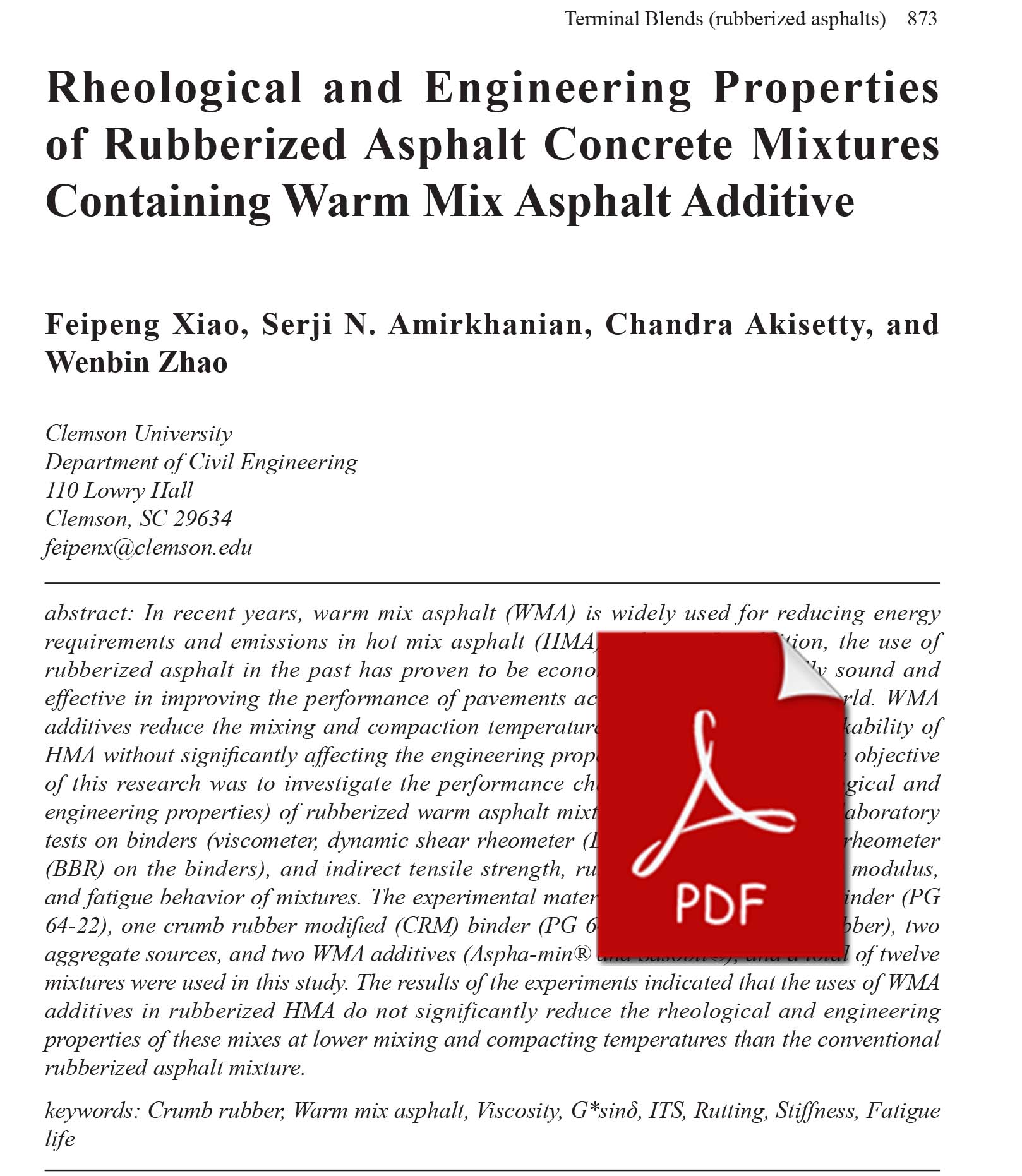 properties of these mixes at lower mixing and compacting temperatures than the conventional rubberized asphalt mixture.